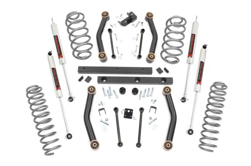 Who says your Jeep TJ can't handle both weekday commutes and weekend trails? Rough Country's 4-inch Lift Kit delivers the perfect balance of off-road performance and smooth highway comfort. Engineered by our Research and Development Team, this kit gives your TJ the clearance and capability it deserves.Lifted Coil Springs for Superior Stance: Precision-tuned, application-specific coil springs provide a 4-inch lift, improved ground clearance, and a factory-like ride on any terrain. Durable Tubular Control Arms: Outfitted with heavy-duty construction and OEM-style rubber bushings, these arms reduce vibration and ensure reliable articulation off-road.Optimized Driveline Geometry: A tubular transfer case drop and included track bar bracket maintain proper driveshaft angles to minimize wear and vibrations. Extended Sway Bar Links: Keep your suspension geometry in check for consistent handling and stability on and off the trail.Premium Shock Options: This kit comes standard with our high-performance N3 shocks, featuring 10-stage variable valving, high-pressure nitrogen charging, and a durable 54mm shock body for long-lasting vibration dampening. Upgrade to V2 Monotube Shocks for faster heat dissipation and precision handling or M1 Monotube Shocks for maximum off-road performance and superior ride control.Transform your Jeep TJ into a capable, trail-ready machine without sacrificing daily driving comfort with Rough Country's 4-inch Lift Kit.