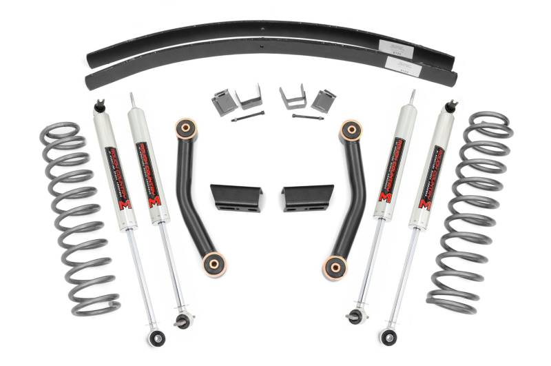 All-Inclusive Lift Solution: Rough Country's 3" Lift Kit for the Jeep Cherokee XJ includes everything you need for a complete upgrade, delivering improved stance, ride quality, and off-road performance.Next-Level Shock Performance: This kit comes equipped with our Nitrogen-charged N3 shocks featuring custom 10-stage variable valving. Engineered for versatility, they deliver a smooth, controlled ride on the pavement and superior performance when the terrain gets rough. For even greater customization, upgrade to our premium M1 monotube shocks for enhanced stability and cooling or step up to V2 monotube shocks for maximum off-road control and long-lasting durability.Lifted Coil Springs for Clearance: Precision-engineered front coil springs provide consistent ride height and help level your Cherokee while allowing clearance for up to 31" tires. Tackle trails or daily driving with confidence.Customizable Rear Suspension: Choose between standard rear add-a-leaf springs for an affordable boost or upgrade to full replacement lifted leaf packs to refresh your suspension and maximize ride quality.
