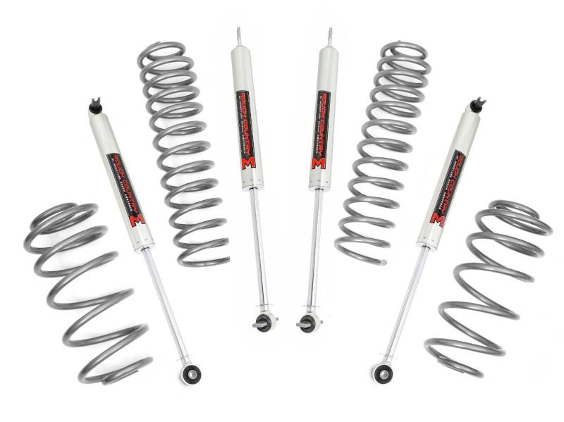 Elevate your Jeep TJ's off-road game and style with Rough Country's 2.5" Suspension Lift Kit. Perfect for larger wheels and tires, this kit enhances your vehicle's ground clearance and gives it a rugged, attention-grabbing look on and off the trail.Lifted Front & Rear Coil Springs: Achieve a taller stance while maintaining factory-like ride quality. These coil springs are tuned to the OEM spring rate for smooth handling whether you're tackling rocky terrain or cruising highways.Customizable Shock Options: Choose from a variety of shocks, including nitrogen-charged N3 or M1 monotube shocks, to suit your driving preferences. Easy Installation: Designed for straightforward installation, this kit includes everything you need for a seamless upgrade.Built to Last: With Rough Country's Limited Lifetime Replacement Guarantee, this suspension lift kit is built to endure the toughest trails and environments.Upgrade your Jeep today and experience superior off-road capability and unmatched style with Rough Country's 2.5" Suspension Lift Kit!