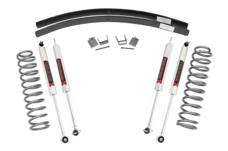All-Inclusive Lift Solution: Rough Country's 3" Lift Kit for the Jeep Cherokee XJ includes everything you need for a complete upgrade, delivering improved stance, ride quality, and off-road performance.Next-Level Shock Performance: This kit comes equipped with our Nitrogen-charged N3 shocks featuring custom 10-stage variable valving. Engineered for versatility, they deliver a smooth, controlled ride on the pavement and superior performance when the terrain gets rough. For even greater customization, upgrade to our premium M1 monotube shocks for enhanced stability and cooling or step up to V2 monotube shocks for maximum off-road control and long-lasting durability.Lifted Coil Springs for Clearance: Precision-engineered front coil springs provide consistent ride height and help level your Cherokee while allowing clearance for up to 31" tires. Tackle trails or daily driving with confidence.Customizable Rear Suspension: Choose between standard rear add-a-leaf springs for an affordable boost or upgrade to full replacement lifted leaf packs to refresh your suspension and maximize ride quality.