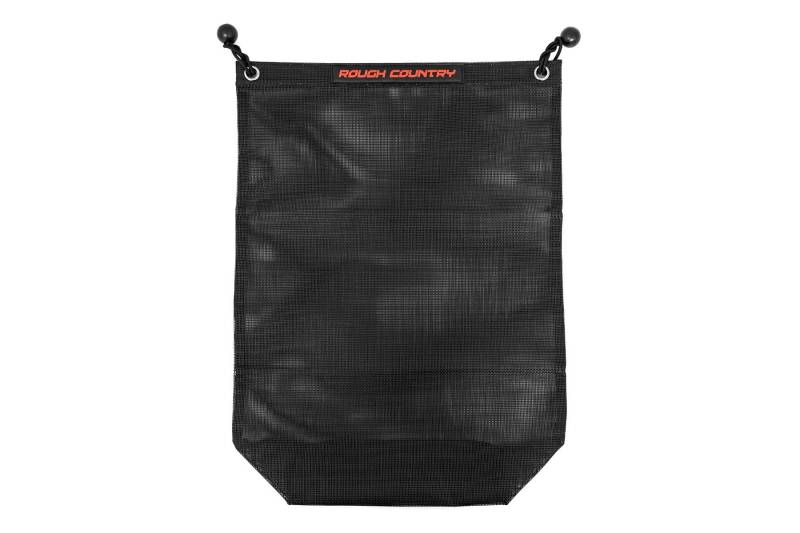 Multiple Use Bag. You're »out in the wilderness, exploring nature and soaking yourself in all that is great about life. You don't want to carry around trash in the back of your UTV/ATV that falls out while you are flying down the trails. Or maybe you need some extra storage for your gear. The Rough Country Mesh Trail Bag has multiple uses, making it perfect for keeping you organized when hitting the trail. Use it as a trash bag, trail-gear bag, or an additional storage compartment. Rough Country Mesh Trail Bags will help haul all your gear or trash wherever the trail takes you. Durable Material. »The Rough Country Mesh Trail Bag is your go-to accessory for hikes, kayaking, and camping trips. It's made from PVC mesh material, which makes for an easy clean-up after your day on the trails. Each bag is also equipped with high capacity ball style bungee straps for secure mounting, and with a large 9.5-gallon capacity, you'll have plenty of room for everything you need for a full day of riding. Its tough construction can handle whatever mess you throw in there, making it easier to pack out whatever you bring along on your trip.