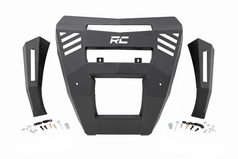 Superior Function: Upgrade your Can-Am Defender's front end with Rough Country's Front Bumper Kit, now available with optional 6" Slimline LED lights in the wings or a 12" Black Series light bar in the center. This rugged bolt-on kit installs easily and follows your Defender's factory lines, giving your UTV a more aggressive, modern appearance while delivering exceptional front-end illumination for night or low-light adventures.Innovative, Durable Design: Crafted from 1/8" heavy-duty steel with a corrosion-resistant powder coat finish, these panels are built to withstand off-road impacts and tough elements. The removable outer wings allow for customization or accessory installation. Lighting options include dual 6" Slimline LED lights in the wings producing 4,800 lumens, or a full setup with dual 6" lights plus a 12" single-row Black Series light bar delivering a combined 9,600 lumens. Each LED light features IP67 waterproofing, ensuring reliable performance in all weather conditions. Effortless Installation: This 100% bolt-on bumper kit is designed for straightforward installation with standard tools. Estimated install time is 3-4 hours, with step-by-step instructions included, so you can upgrade your Defender at home quickly and efficiently.Limited Lifetime Replacement Warranty: Every Rough Country Front Bumper Kit is backed by a limited lifetime replacement warranty against manufacturer defects. Rest easy knowing your investment is protected from structural or workmanship issues, giving you confidence on every ride.