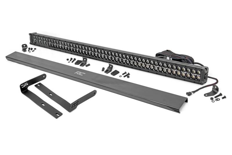 - Forward Facing Illumination: Provides powerful, cab-mounted lighting that projects straight ahead for improved visibility on the trail or jobsite.\ Wiper Compatible Design: Engineered to work seamlessly with the factory windshield wiper without interference.\ Single Row LED Light Bar Options: Equipped with a Rough Country Black Series single row LED light bar producing 19200 lumens, available with or without integrated DRL function.\ Optional Dual Row LED Light Bar Without DRL: Features a Rough Country Black Series dual row LED light bar delivering 23040 lumens for increased light coverage.\ Optional Dual Row LED Light Bar With DRL: Maximum output configuration using a Rough Country Black Series dual row LED light bar with integrated DRL function producing 43200 lumens.\ Easy Bolt On Installation: 100 percent bolt on design allows for a straightforward install with no drilling required.\ IP67 Waterproof Rating: Built to withstand rain, mud, and harsh outdoor conditions for reliable performance year round.\ Heavy Duty Construction: Die cast aluminum housing offers superior durability and efficient heat dissipation.\ Complete Kit Included: Comes with a snap on protective cover and premium wiring harness for a clean, professional install..