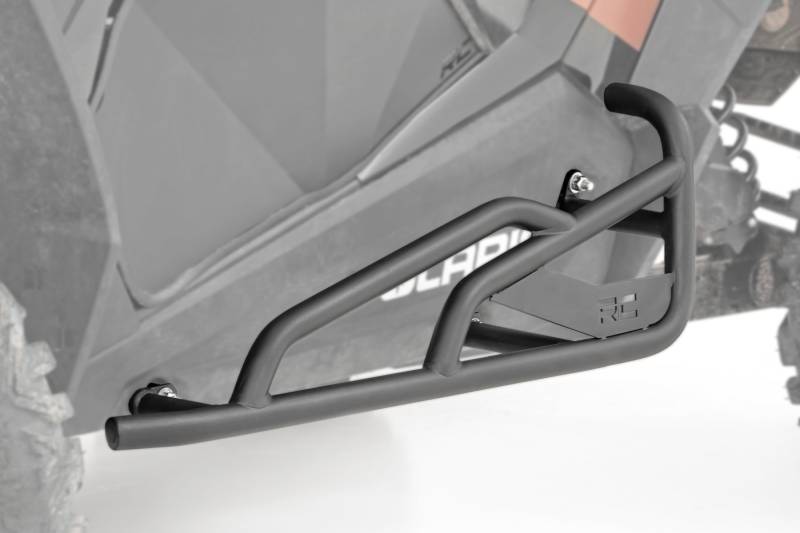 Protect Your RZR Where It Matters Most: Worried about damaging the plastics and side panels on your Polaris RZR XP 1000 while tackling tight trails and rocky terrain? Your UTV is built for adventure, and it deserves protection that can keep up. That is why Rough Country engineered these heavy-duty Rock Sliders specifically for Polaris RZR XP 1000 2-seater models.Built Tough for Real Trail Abuse: Constructed from 1/8-inch thick steel and formed with massive 1.5-inch diameter tubing, these rock sliders are designed to take repeated hits from rocks, trees, and trail obstacles. The thick-wall construction adds serious impact resistance while helping shield doors and side panels from costly damage. Finished in a durable powder coat, they resist corrosion and UV exposure to maintain strength and appearance ride after ride.Easy Bolt-On Installation: Get trail-ready without complicated installs or permanent modifications. Rough Country's Rock Sliders bolt directly to factory mounting points with no frame drilling required. Simply remove the factory side trim bolts, install the included hardware, and you are ready to take on any obstacle with confidence.
