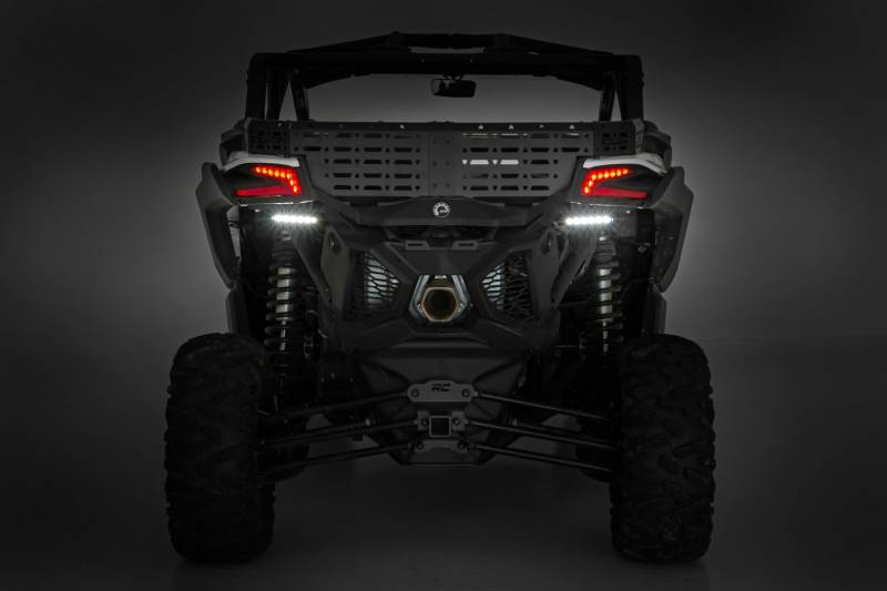 - Rear-Facing Illumination: Adds powerful light output behind your Maverick X3 for safer reversing, loading, and trail visibility.\ Easy Installation: Bolt-on design makes adding rear lighting quick and hassle-free.\ High-Output LED Bars: Includes two 6 inch Slimline LED light bars delivering a combined 4800 lumens of brilliant illumination.\ Wide 90 Degree Flood Beam: Projects a broad, even spread of light to fully illuminate your surroundings.\ Sleek Black Panel Design: Low-profile housing blends seamlessly with your Maverick X3.\ IP67 Waterproof Rating: Fully protected against moisture, dust, and harsh off-road conditions.\ Durable Die Cast Aluminum Housing: Built to withstand impacts, vibration, and rugged terrain.\ Moisture Breather Technology: Reduces internal condensation for consistent, long-lasting clarity.\ Premium Wiring Harness: Features a flat-wound design and integrated on/off switch for clean, reliable power delivery.\ Three Year Warranty: Backed by Rough Country for lasting performance and peace of mind..