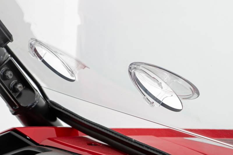 Added Protection and Customizable Comfort: Shield the occupants of your Honda Talon from off-road hazards like rocks, branches, and debris with Rough Country's Scratch-Resistant Windshield. This innovative design combines protection with unmatched comfort by featuring 4 adjustable vents that allow you to control airflow to suit your needs. Vents can be closed, opened, or half-opened for ultimate versatility. Whether you're navigating dusty trails or keeping cool on hot days, the 360?? rotating vents provide superior flexibility, making every ride more enjoyable. High-Quality Polycarbonate Construction: Crafted from thick .25 polycarbonate material, Rough Country windshields deliver the ultimate combination of clarity, flexibility, and durability. Precision cut for a flawless fit, this material outperforms glass and acrylic in toughness, ensuring your windshield can handle even the roughest terrains. Enhanced Durability with Scratch and UV Resistance: Each windshield is coated with a secondary AR2 hard-coating process, creating a robust scratch-resistant barrier that extends its lifespan. This treatment also provides UV protection, ensuring your windshield remains clear and functional for years to come. Contoured Design with a Precision Fit: The contoured design and premium rubber seal ensure a secure, rattle-free fit that keeps out dust, debris, and water, while seamlessly complementing the rugged aesthetics of your Honda Talon. Seamless Roof Compatibility: Engineered to integrate effortlessly with both factory and most aftermarket roofs, this windshield adds versatility without compromising style or functionality. Quick and Easy Installation: With a simple strap-on installation process, you can have your Rough Country windshield ready to go in as little as 15?Çô30 minutes. Spend less time prepping and more time conquering the trails. Limited-Lifetime Replacement Warranty: Rough Country stands behind its products with a limited lifetime replacement warranty against manufacturer defects. Ride with confidence knowing your windshield is protected from structural or workmanship damage.