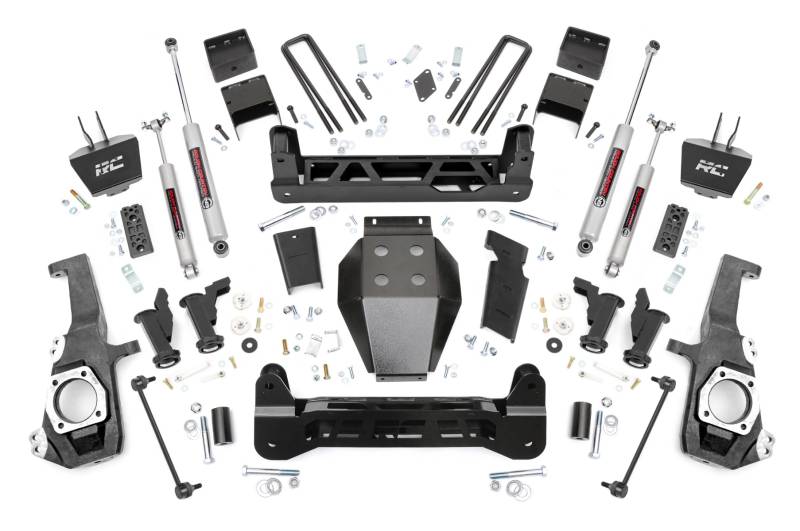 Ultimate Upgrade. Give your GM 2500HD/3500HD an unbeatable stance and better ride quality with Rough Country's 5-inch Lift Kit with Torsion Drop. This kit is a unique offering of suspension lifts, delivering the desired torsion drop look and ride you want while still offering unmatched ground clearance. The Torsion Drop brackets are designed to ensure that your vehicle's track width is not widened and allows you to maintain the factory feel of handling corners and turns. So take your everyday ride and make it one of a kind with our 5-inch Lift Kit with Torsion Drop!Premium Construction. This 5-Inch rugged lift kit is made of heavy-duty laser-cut steel components, powder-coated for a long-lasting finish. It includes replacement knuckles, 1/4" thick steel cross members for the front and rear, fabricated lift blocks, and 1/4" thick Torsion Drop Bar Brackets. You also get the option to configure with multiple shock options that we offer. This allows you to choose the shock series that best fits your needs! Ranging from our nitrogen-charged N3 shocks, to V2 monotube shocks, or our high-performance Vertex adjustable shocks, the power to choose is in your hands. This setup will give you a level stance and the ride height you need to run those larger tires with ease.Installation and Warranty. This kit is packed with all hardware needed for installation and includes full sway bar links, a durable, thick Skid Plate, and brake line relocation brackets. Although some minor cutting and drilling are required, there is no drilling or modifying of the differential, and no drivetrain or exhaust modifications are required. Rough Country's products are backed with a limited lifetime replacement warranty. This means that you have the security of knowing that Rough Country's products will work as they should, even after years of use.