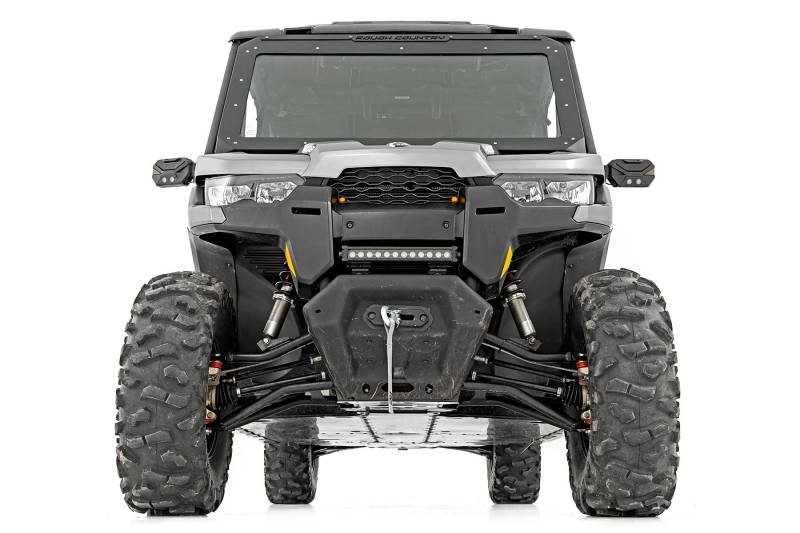 Improved Stance, Balance, and Confident Control: Take your Can-Am Defender to the next level with Rough Country's M1 Adjustable Coilovers. Designed to dramatically improve ride quality, these high-performance shocks stabilize suspension movement for better control during cornering, braking, acceleration, and uneven terrain. The adjustable ride height design allows fine tuning from 0 to 2 inches of lift, helping prevent suspension overextension while delivering a smoother, more predictable ride. Featuring a 46mm digressive piston and advanced monotube construction, M1 Coilovers instantly react to changing surface conditions, maintaining comfort on the trail and stability under load.Engineered Strength and Precision Performance: Built for demanding workdays and weekend trail rides, Rough Country's M1 Coilovers are constructed from a heavy-duty 2-inch seamless extruded shock body for increased durability and heat dissipation. The threaded, grooved shock body allows easy ride height adjustments even after installation, while the self-adjusting deflective-disc valving independently manages rebound and compression for consistent, fade-free performance. An 18mm case-hardened, chromed, and super-polished shock shaft delivers smooth operation and extended seal life, while silent block rubber bushings reduce vibration and unwanted noise. Finished in a corrosion-resistant zinc plating, these coilovers are built to withstand harsh environments and long-term use.Simple Installation and Proven Warranty Coverage: This bolt-on coilover kit installs using basic tools with an estimated install time of 2 to 3 hours. A spanner wrench is included to make ride height adjustments fast and precise. Whether you are adding ground clearance for off-road use or restoring factory ride height with improved control, Rough Country's M1 Coilovers deliver dependable performance. Backed by a 3-year manufacturer replacement warranty against defects in materials and workmanship, you can upgrade with confidence and peace of mind.