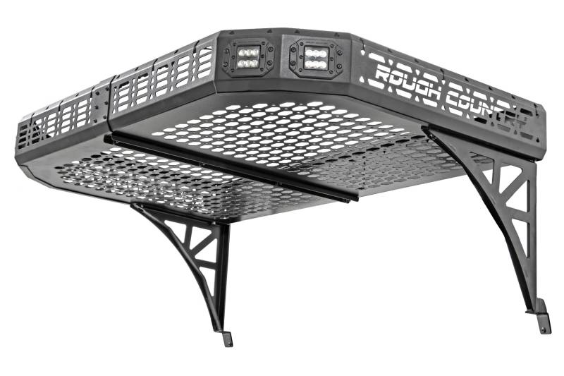 Overland adventures demand reliable cargo space. With Rough Country's Rear Cargo Rack Kit, you can increase your Can-Am Defender's storage capabilities without compromising bed space or dumping functionality. This rugged, heavy-duty steel rack is built to wit'stand any challenge, ensuring durability and strength through every adventure.Engineered for Toughness & Protection: Constructed from heavy-duty steel, this cargo rack boasts a corrosion-resistant, powder-coated finish that protects against the harshest elements. No matter the terrain, the IP67 waterproof design ensures that your gear stays safe from water, dust, and dirt. This kit's versatile mesh pattern includes multiple tie-down points, providing flexibility to secure all your gear without worry.Seamless & Hassle-Free Installation: Enjoy a quick and easy setup with 100% bolt-on installation no drilling, no cutting, just a secure, factory-like fit. Plus, the full dump bed functionality remains intact, so you can haul heavy loads or dump with ease. For those nighttime adventures, you can opt for two pairs of 2-inch flush mount Cree LED lights, offering superior visibility and durability.Durable & Long-Lasting: Whether you're navigating rugged landscapes or navigating daily tasks, Rough Country's rear cargo rack kit provides unmatched reliability and toughness. With years of protection and a design built to last, it's the ultimate upgrade for your Can-Am Defender.
