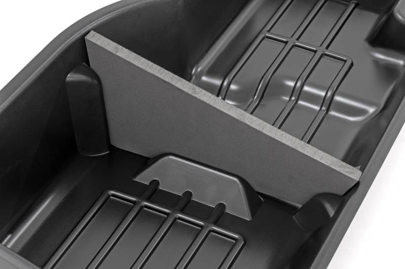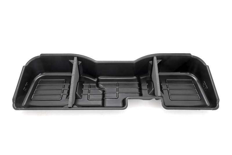 Clean up the contents of your cab with Rough CountryΓÇÖs Custom-Fit Under Seat Storage Compartment. These handy underseat truck storage compartments offer an easy way to store your gear with a custom, contoured look that blends in seamlessly with your vehicleΓÇÖs factory design. Keep your tools, gear, and other odds and ends organized and stowed away while conveniently stowed away under the rear seats.\ Each under-seat storage tray is constructed from a durable, high-density thermoplastic material thatΓÇÖs built to withstand kicks, nicks, and corrosion. A convenient anti-skid surface helps prevent the contents of your underseat cargo tray from rolling around while driving. Best of all, Rough CountryΓÇÖs Custom-Fit Under Seat Storage Compartments are easy to install, so you can upgrade your cargo management quickly and easily!