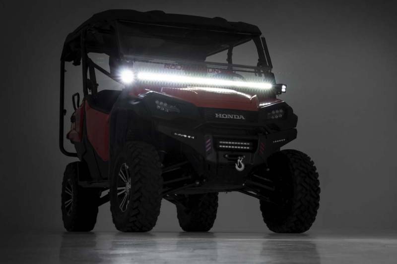 COMMAND THE DARK: Transform your Honda Pioneer with Rough Country's 50-inch LED Lower Windshield Kit. This all-in-one solution puts a massive 50-inch LED light bar in the perfect forward-facing position for unmatched off-road visibility.Unmatched Brightness: With over 19,200 lumens and 240 watts of high-intensity CREE LED output, you'll light up the trail like never before, staying out longer and riding with confidence after sunset.Built to Withstand the Elements: The rugged die-cast aluminum housing is IP67 waterproof, while Moisture Breather technology minimizes condensation behind the lens. This kit is designed to perform in any weather, keeping your lighting clear and reliable.Plug-and-Play Convenience: Includes a premium flat-wound wiring harness with toggle switch and in-line fuse for effortless operation. The 100% bolt-on installation means you can upgrade your Pioneer quickly, no drilling required.Upgrade Your UTV Experience: Don't settle for ordinary, add one of the best Honda Pioneer accessories to your ride and enjoy superior trail illumination, durability, and style.