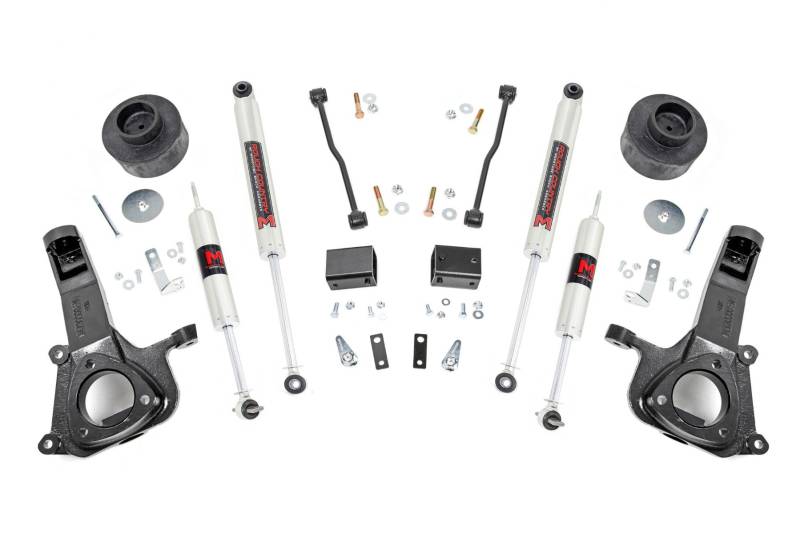 - Maintains Factory Ride Quality: Enjoy a smooth, comfortable drive that mirrors your truck's original handling, both on and off the road.\ Boosts Ground Clearance: Gain additional height to easily conquer rough terrain and larger obstacles with confidence.\ Achieves a Level Stance: Levels the front of your truck with the rear for a balanced, aggressive appearance.\ Premium Lift Components: Includes lifted knuckles and durable coil spring spacers, delivering enough clearance to run up to 35x12.50 tires.\ Configurable Shock Options: Tailor your ride with your choice of nitrogen-charged N3 shocks or high-performance M1 Monotubes for enhanced control and comfort..
