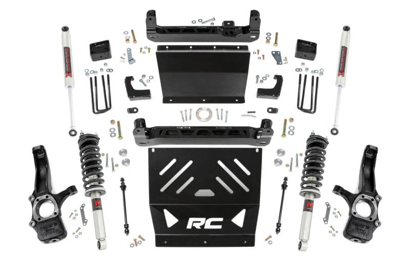 - Boosted Ground Clearance: Conquer tougher terrain with added height for superior off-road capability.\ Factory Track Width Retention: Keeps your vehicle's stance intact for stability and handling.\ Smooth, Factory-Like Ride: Enjoy the lift without sacrificing comfort or drivability.\ Hassle-Free Installation: No welding or strut disassembly required - get back on the road faster.\ No Tie Rod Modifications Needed: No cutting or replacing, keeping your steering components intact.\ Durable Front Skid Plate: Features a laser-cut "RC" logo for a sleek, aggressive look.\ Precision-Engineered Lifted Knuckles: Designed to maintain OE geometry for optimal performance.\ Heavy-Duty Fabricated Rear Lift Blocks: Stronger and longer-lasting than cast blocks for added durability..