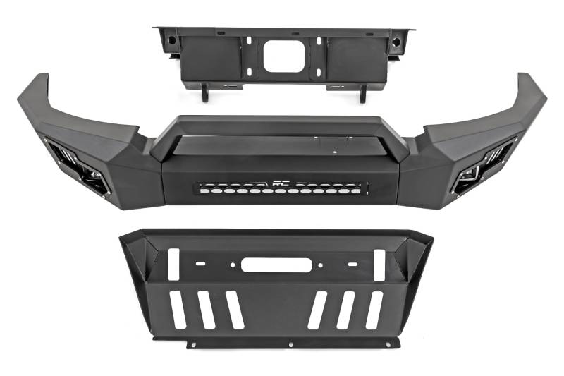 Transform Your Tacoma's Front End with Aggressive Style and Rugged Protection: Give your second-generation Toyota Tacoma a bold, commanding look with Rough Country's Front LED Bumper. Designed to combine aggressive styling with functional performance, this bumper delivers superior off-road protection and outstanding night-time illumination for every adventure.Heavy-Duty Steel Construction for Lasting Durability: Built from rugged, all-steel construction, this bumper is designed to handle off-road obstacles, trail debris, and everyday abuse. The flat black powder coat finish resists corrosion and keeps your Tacoma looking tough mile after mile.Integrated Features for Ultimate Off-Road Capability: Each bumper comes equipped with (2) 2-Inch Rough Country Black Series LED cubes producing 4,800 lumens, an integrated skid plate to shield your undercarriage, a bolt-on stinger bar for added protection and style, and a winch mount to expand your recovery and lighting capabilities. The included high-capacity 4.75-ton D-ring set and retained factory tow hooks ensure you're ready for any off-road situation.Quick, Hassle-Free Installation: No cutting or drilling is required, this bolt-on design makes installation fast and easy while keeping your Tacoma's factory mounting points intact.Peace of Mind with Robust Warranties: Rough Country stands behind its products with confidence. The LED lights are backed by a 3-year warranty, the bumper finish carries a 1-year warranty, and the bumper itself comes with a limited lifetime warranty against manufacturing defects, ensuring you can take on the trails worry-free.