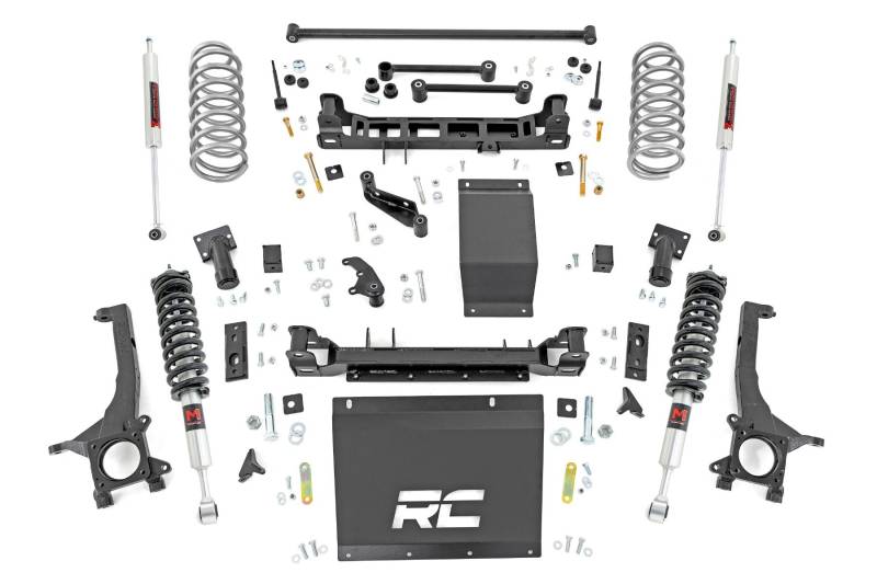 Superior Lift Solution. Looking to add some serious attitude to your Toyota 4Runner? Rough Country's 4.5-Inch Lift Kit is just what you need. This lift kit gives your 4Runner a meaner, lifted, and level stance while providing a smooth ride for unmatched highway and trail performance. It also adds room for larger wheels and tires, so you can make your truck stand out from the crowd. With excellent ride quality and handling characteristics on the road, this lift kit is the perfect way to take your Toyota to the next level.\ High-Quality Construction. Rough Country's 4.5-Inch Lift Kit for the 2015-2020 Toyota 4Runner makes it easy to gain that much-needed ground clearance and run up to a 33" tire for that aggressive look you want! Designed to provide excellent ride quality width and factory alignment specs, this kit boasts premium components, giving you a higher quality lift on your 4Runner. The high-quality components and innovative design provide the strength, stability, and up-travel you need to conquer almost any terrain.\ Installation and Warranty. Our 4.5-Inch Lift Kit is his all-inclusive kit is a total transformation for your SUV, with durable lifted knuckles, protective skid plate, and all the brackets and hardware needed to set your SUV to a factory-like geometry while providing additional ground clearance. When you purchase a Rough Country product, you get more than a great product at an affordable price. You also get peace of mind knowing that your purchase comes with a limited lifetime replacement warranty for manufacturer defects. With Rough Country's industry-leading warranty, you can be sure that your Rough Country lift kit is protected from structural and workmanship damage after the date of purchase.
