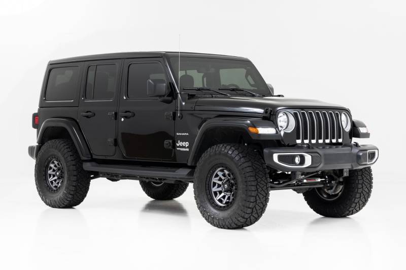 Put the finishing touch on your Jeep Wrangler JL with Rough Country's 2.5-Inch Suspension Lift Kit. Crafted specifically for the 4-door model, this kit provides the clearance to easily run 35-inch tires, taking your JL to new heights with a bold, trail-ready stance.Level Up Your Ride: Eliminate the factory nose-dive and achieve a sleek, leveled look. This lift kit levels the front with the rear, giving your Jeep a rugged stance that can conquer any trail.Improved Off-Roading Performance: Gain the extra ground clearance needed to tackle tough terrain without worry. Optimized approach, breakover, and departure angles ensure your JL performs confidently on challenging trails.Ride Improvement: Linear coil rate springs enhance handling and load support, improving performance both on and off the trail.Custom Shock Options: Configure your lift with your choice of nitrogen-charged N3 shocks, V2, M1 Monotube, or premium M1R shocks to perfectly match your driving style, from comfortable daily driving to maximum off-road control.Additional Tire Clearance: This kit clears up to 35-inch tires, giving your Jeep a more aggressive, head-turning stance.Easy Bolt-On Installation: Designed for hassle-free installation, this 100% bolt-on lift gets you back on the trail faster without the need for complex modifications.