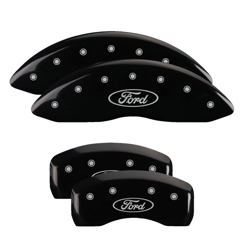 Set of 4 caliper covers, Engraved Front and Rear: Oval logo/Ford, Black powder c MGP Caliper Covers are a car accessory designed and manufactured specifically for your 2015-2018 Ford Edge to cover up and hide those ugly brake calipers. These aluminum caliper covers are finished with a high-quality powder coat. MGP caliper covers will enhance your wheel appearance and curbside appeal with either black, yellow or red caliper covers. MGP Brake Caliper Covers are tested for safety fitment and are licensed by major manufacturers.