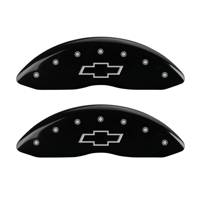 Front set 2 caliper covers, Engraved Front: Bowtie, Black powder coat finish, si MGP Caliper Covers are a car accessory designed and manufactured specifically for your 2004-2012 Chevrolet Colorado to cover up and hide those ugly brake calipers. These aluminum caliper covers are finished with a high-quality powder coat. MGP caliper covers will enhance your wheel appearance and curbside appeal with either black, yellow or red caliper covers. MGP Brake Caliper Covers are tested for safety fitment and are licensed by major manufacturers.
