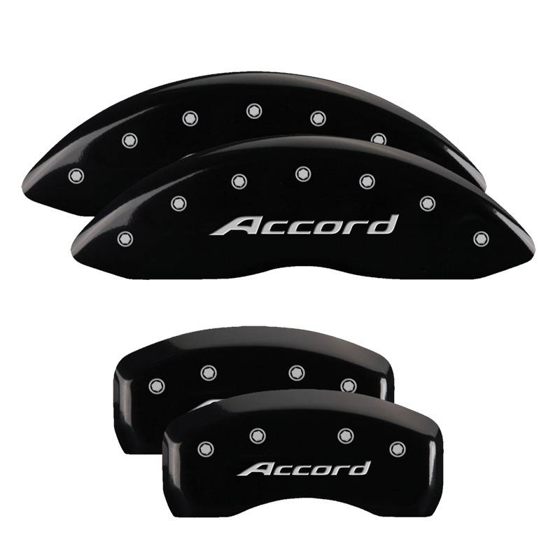 Set of 4 caliper covers, Engraved Front: Accord - Engraved Rear: Accord, Black p MGP Caliper Covers are a car accessory designed and manufactured specifically for your 2016-2017 Honda Accord to cover up and hide those ugly brake calipers. These aluminum caliper covers are finished with a high-quality powder coat. MGP caliper covers will enhance your wheel appearance and curbside appeal with either black, yellow or red caliper covers. MGP Brake Caliper Covers are tested for safety fitment and are licensed by major manufacturers.
