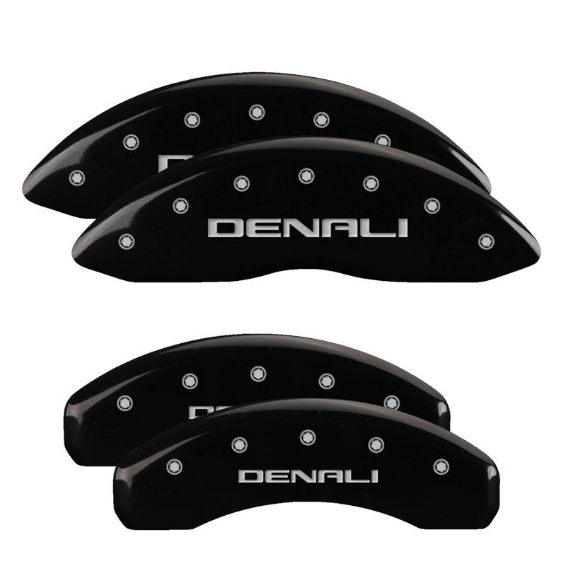 Set of 4 caliper covers, Engraved Front and Rear: Denali, Black powder coat fini MGP Caliper Covers are a car accessory designed and manufactured specifically for your 2007-2014 GMC Sierra to cover up and hide those ugly brake calipers. These aluminum caliper covers are finished with a high-quality powder coat. MGP caliper covers will enhance your wheel appearance and curbside appeal with either black, yellow or red caliper covers. MGP Brake Caliper Covers are tested for safety fitment and are licensed by major manufacturers.