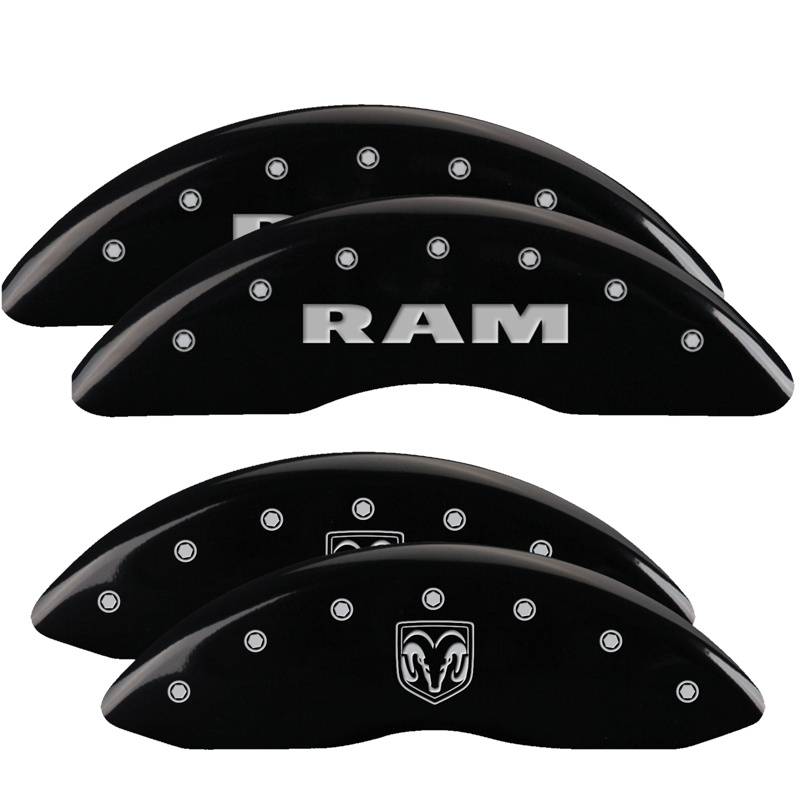 Set of 4 caliper covers, Engraved Front: RAM - Engraved Rear: RAMHEAD, Black pow MGP Caliper Covers are a car accessory designed and manufactured specifically for your 2011-2018 RAM 2500 to cover up and hide those ugly brake calipers. These aluminum caliper covers are finished with a high-quality powder coat. MGP caliper covers will enhance your wheel appearance and curbside appeal with either black, yellow or red caliper covers. MGP Brake Caliper Covers are tested for safety fitment and are licensed by major manufacturers.