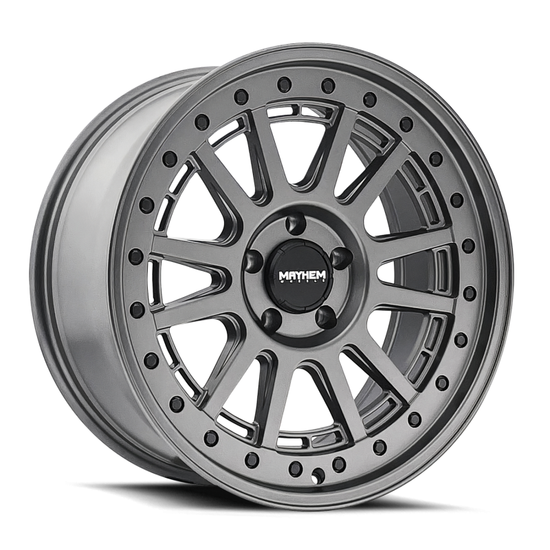 MAYHEM WHEELS DEVELOPMENT WAS IMMINENT AS WE ACCEPTED THE MISSION TO CREATE A BRAND THAT PROVIDES UNIQUE STYLING PRECISION QUALITY AND SUBSTANTIAL ALLURE. OUR TACTICAL APPROACH TO CONSTRUCTING THE INDUSTRY'S MOST SUPERIOR PRODUCTS RESULTED IN A RADICALLY DURABLE WHEEL THAT TOUTS THE HIGHEST LOAD RATINGS FOR REAL WORLD APPLICATIONS. TARGETED FOR TRUCKS JEEP AND SUV FITMENTS WE DEPLOY A WIDE VARIETY OF SIZES AND FITMENTS WHICH SUPPLY A CUSTOM LOOK THAT'S UNMISTAKABLE. LIBERATE YOUR VEHICLE WITH A SET OF MAYHEM WHEELS.