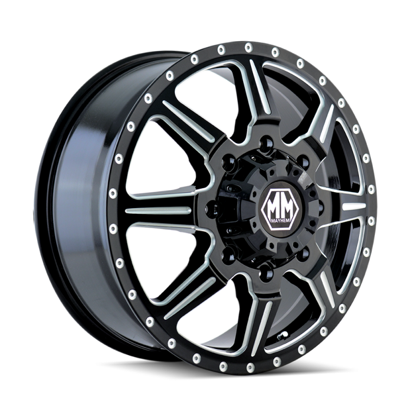 MAYHEM WHEELS DEVELOPMENT WAS IMMINENT AS WE ACCEPTED THE MISSION TO CREATE A BRAND THAT PROVIDES UNIQUE STYLING PRECISION QUALITY AND SUBSTANTIAL ALLURE. OUR TACTICAL APPROACH TO CONSTRUCTING THE INDUSTRY'S MOST SUPERIOR PRODUCTS RESULTED IN A RADICALLY DURABLE WHEEL THAT TOUTS THE HIGHEST LOAD RATINGS FOR REAL WORLD APPLICATIONS. TARGETED FOR TRUCKS JEEP AND SUV FITMENTS WE DEPLOY A WIDE VARIETY OF SIZES AND FITMENTS WHICH SUPPLY A CUSTOM LOOK THAT'S UNMISTAKABLE. LIBERATE YOUR VEHICLE WITH A SET OF MAYHEM WHEELS.