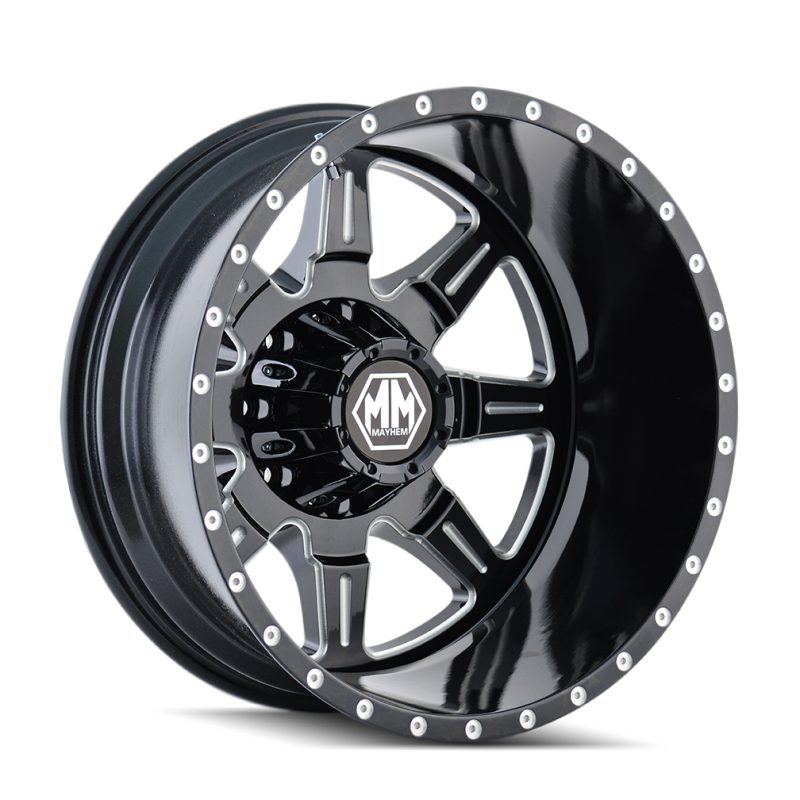 MAYHEM WHEELS DEVELOPMENT WAS IMMINENT AS WE ACCEPTED THE MISSION TO CREATE A BRAND THAT PROVIDES UNIQUE STYLING PRECISION QUALITY AND SUBSTANTIAL ALLURE. OUR TACTICAL APPROACH TO CONSTRUCTING THE INDUSTRY'S MOST SUPERIOR PRODUCTS RESULTED IN A RADICALLY DURABLE WHEEL THAT TOUTS THE HIGHEST LOAD RATINGS FOR REAL WORLD APPLICATIONS. TARGETED FOR TRUCKS JEEP AND SUV FITMENTS WE DEPLOY A WIDE VARIETY OF SIZES AND FITMENTS WHICH SUPPLY A CUSTOM LOOK THAT'S UNMISTAKABLE. LIBERATE YOUR VEHICLE WITH A SET OF MAYHEM WHEELS.