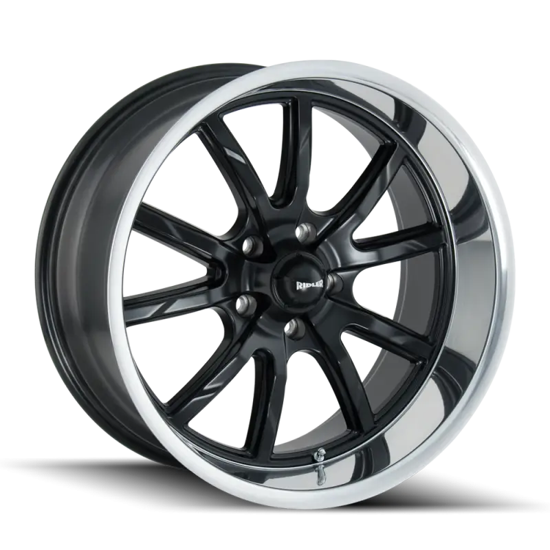650 (650) MATTE BLACK POLISHED THE ROOTS RUN DEEP IN CAR CULTURE AND THAT PASSION CONTINUES TO PASS THROUGH THE GENERATIONS. RIDLER CUSTOM WHEELS PAYS TRIBUTE TO THE LOVE OF THE AUTOMOBILE SPANNING FROM HOT RODS RESTO MODS CLASSICS MODERN MUSCLE AND MUCH MORE. WITH A VISION TO WRITE A NEW CHAPTER IN HISTORY OUR DESIGNS CAPTURE THE PERFECT STYLE TO MOLD YOUR DESIRE INTO REALITY. RIDLER BUILDS WHEELS CATERING FROM 15" THROUGH 22" INCLUDING STAGGERED FITMENTS THAT GIVE YOU THE IDEAL FITMENT. ALL OF OUR WHEELS ARE BACKED BY A PROMISE THAT ENSURES ONLY THE HIGHEST QUALITY ALLOYS ARE USED WHICH EASILY SURPASS THE INDUSTRY'S MOST STRINGENT STANDARDS. LET OUR INGENUITY GO BEYOND YOUR EXPECTATION. REFINED SPLIT 5 SPOKE DESIGN STAGGERED FITMENTS AVAILABLE FOR HOTRODS AS WELL AS MODERN MUSCLE HIGH CLEARANCE FOR BIG BRAKE UPGRADES OFFERED IN A VARIETY OF 5 LUG FITMENTS AND BACKSPACE OPTIONS AVAILABLE IN 3 FINISHES: CHROME, MATTE BLACK WITH POLISHED LIP AND DEEP GRAY WITH POLISHED LIP