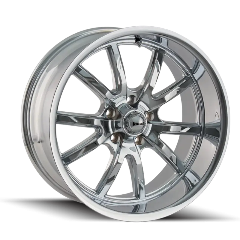 650 (650) CHROME THE ROOTS RUN DEEP IN CAR CULTURE AND THAT PASSION CONTINUES TO PASS THROUGH THE GENERATIONS. RIDLER CUSTOM WHEELS PAYS TRIBUTE TO THE LOVE OF THE AUTOMOBILE SPANNING FROM HOT RODS RESTO MODS CLASSICS MODERN MUSCLE AND MUCH MORE. WITH A VISION TO WRITE A NEW CHAPTER IN HISTORY OUR DESIGNS CAPTURE THE PERFECT STYLE TO MOLD YOUR DESIRE INTO REALITY. RIDLER BUILDS WHEELS CATERING FROM 15" THROUGH 22" INCLUDING STAGGERED FITMENTS THAT GIVE YOU THE IDEAL FITMENT. ALL OF OUR WHEELS ARE BACKED BY A PROMISE THAT ENSURES ONLY THE HIGHEST QUALITY ALLOYS ARE USED WHICH EASILY SURPASS THE INDUSTRY'S MOST STRINGENT STANDARDS. LET OUR INGENUITY GO BEYOND YOUR EXPECTATION. REFINED SPLIT 5 SPOKE DESIGN STAGGERED FITMENTS AVAILABLE FOR HOTRODS AS WELL AS MODERN MUSCLE HIGH CLEARANCE FOR BIG BRAKE UPGRADES OFFERED IN A VARIETY OF 5 LUG FITMENTS AND BACKSPACE OPTIONS AVAILABLE IN 3 FINISHES: CHROME, MATTE BLACK WITH POLISHED LIP AND DEEP GRAY WITH POLISHED LIP
