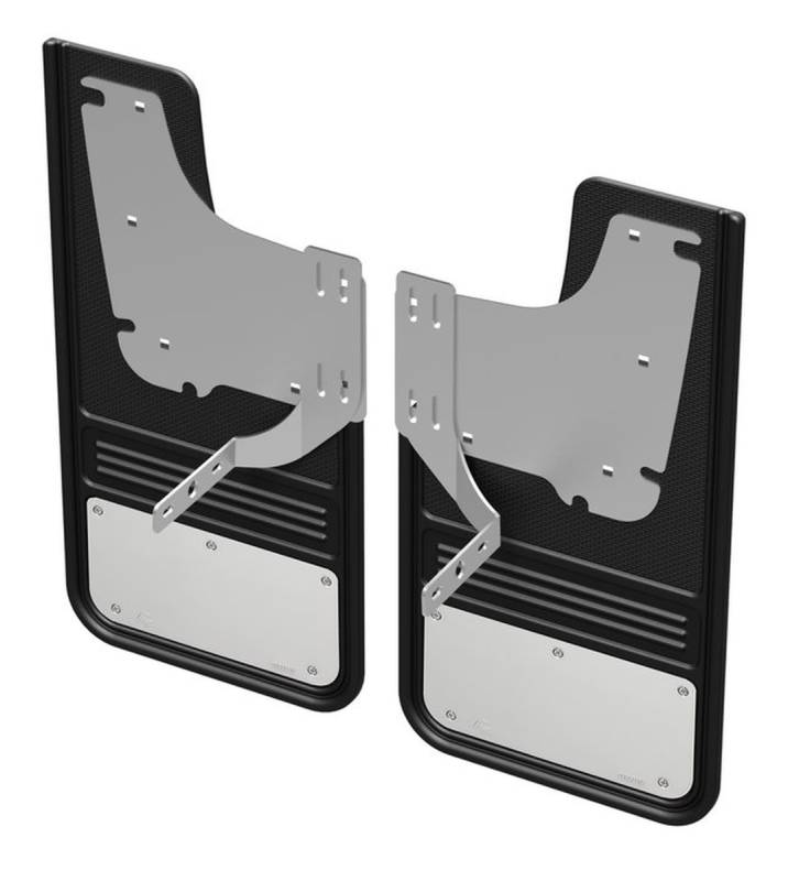 Gatorback Mud Flaps are the premier mud flap when it comes to vehicle protection. Gatorback Mud Flaps are made from heavy duty virgin rubber to give the mud flaps flexibility, durability and with the weight of the rubber, the flaps will not sail. Gatorback offers several mud flap options for most late model pickups, SUV's, and CUV's. Whether you have fender flares, a dually, oversized tires with a suspension lift, or need to have a set of removable flaps, Gatorback has your vehicle covered. Gatorback Mud Flaps are fitted with optional trim plates to add a touch of style, weight, and rigidity. These plates are offered in various finishes including polished stainless, black, or gunmetal. Gatorback also offers a variety of officially licensed manufacturer logos and branding, allowing you to show off your personalized style.