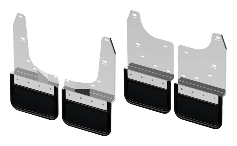 Gatorback Mud Flaps are the premier mud flap when it comes to vehicle protection. Gatorback Mud Flaps are made from heavy duty virgin rubber to give the mud flaps flexibility, durability and with the weight of the rubber, the flaps will not sail. Gatorback offers several mud flap options for most late model pickups, SUV's, and CUV's. Whether you have fender flares, a dually, oversized tires with a suspension lift, or need to have a set of removable flaps, Gatorback has your vehicle covered. Gatorback Mud Flaps are fitted with optional trim plates to add a touch of style, weight, and rigidity. These plates are offered in various finishes including polished stainless, black, or gunmetal. Gatorback also offers a variety of officially licensed manufacturer logos and branding, allowing you to show off your personalized style.