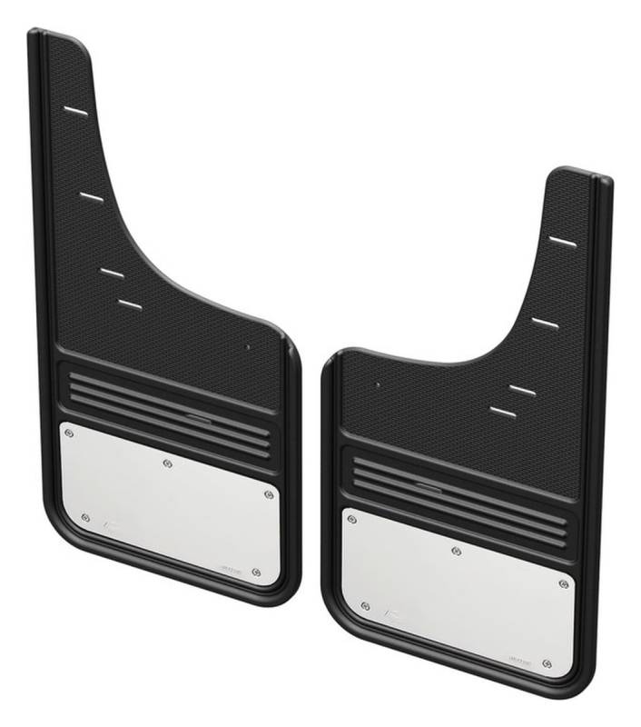 Gatorback Mud Flaps are the premier mud flap when it comes to vehicle protection. Gatorback Mud Flaps are made from heavy duty virgin rubber to give the mud flaps flexibility, durability and with the weight of the rubber, the flaps will not sail. Gatorback offers several mud flap options for most late model pickups, SUV's, and CUV's. Whether you have fender flares, a dually, oversized tires with a suspension lift, or need to have a set of removable flaps, Gatorback has your vehicle covered. Gatorback Mud Flaps are fitted with optional trim plates to add a touch of style, weight, and rigidity. These plates are offered in various finishes including polished stainless, black, or gunmetal. Gatorback also offers a variety of officially licensed manufacturer logos and branding, allowing you to show off your personalized style.