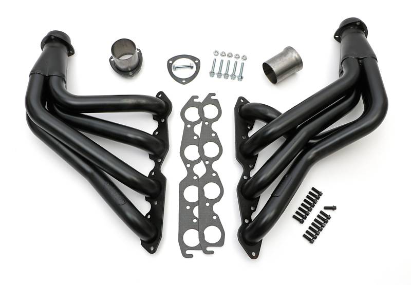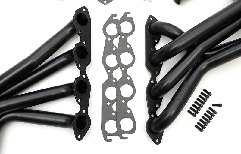 Black Long-Tube Headers For 1965-82 Corvette 396-502 Handcrafted, Mild Steel Construction. Long Tube Header Design Provides Excellent Top-End Horsepower and Torque. Ball & Socket Collector Design requires No Gasket, and Allows For More Exhaust System Misalignment than Old School, Gasket-Style Header Collectors Includes All The Necessary Mounting Hardware, Gaskets and Reducers (exhaust adapters) Limted Lifetime Warranty On Construction, Five Year Warranty on Factory-Applied Header Coating!