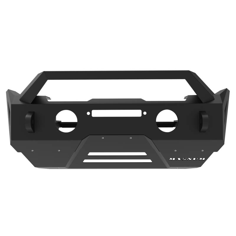 Magnum Front Stubby Winch Ready Bumpers Black Textured Alloy Steel Magnum RT Stubby Front Bumpers are built for maximum clearance with a high-clearance skid plate to improve approach angles and front-end protection. Constructed from 1/8" steel with 1/4" support braces for superior strength, they feature an integrated winch plate for up to a 12.5k winch with synthetic rope fairlead. Fully welded 1-inch solid steel D-ring anchors provide secure recovery points, while their durable 3-stage powder coat delivers long-lasting corrosion resistance. Quick no-drill install. Corrosion resistant black textured finish Heavy-duty 1/8" steel shell with 1/4" internal bracing construction Compatible with OE or aftermarket fog lights RT Bar fits up to a 20" dual-row LED light bar