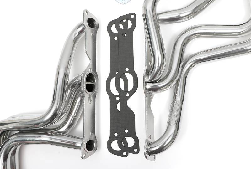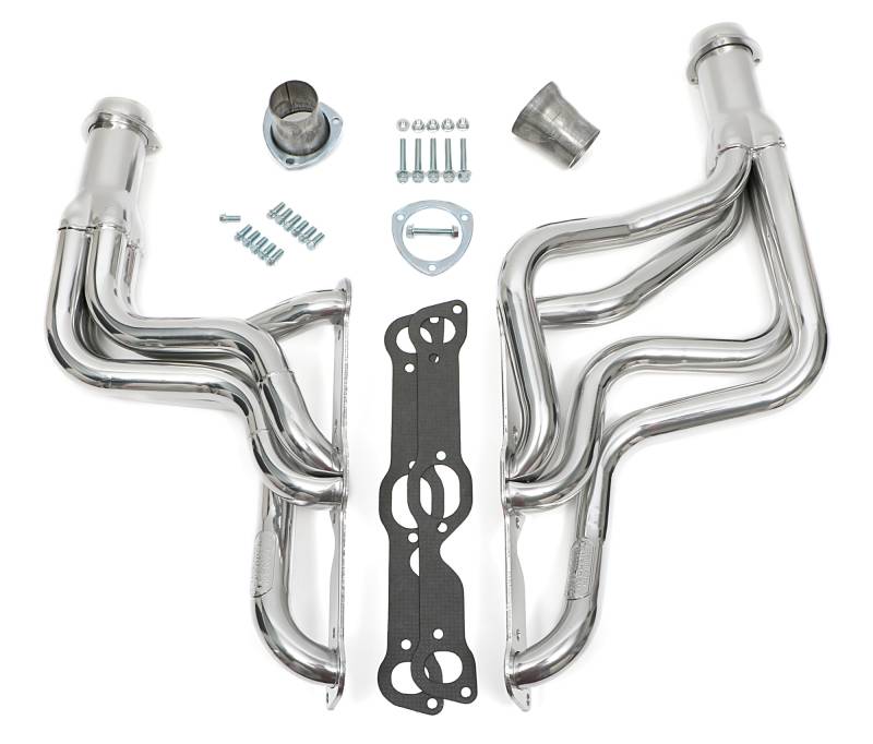 Silver Long-Tube Headers For 1964-72 Pontiac GTO, LeMans, Tempest w/ Pontiac V8 Handcrafted, Mild Steel Construction. Long Tube Header Design Provides Excellent Top-End Horsepower and Torque. Ball & Socket Collector Design requires No Gasket, and Allows For More Exhaust System Misalignment than Old School, Gasket-Style Header Collectors Includes All The Necessary Mounting Hardware, Gaskets and Reducers (exhaust adapters) Limted Lifetime Warranty On Construction, Five Year Warranty on Factory-Applied Header Coating!