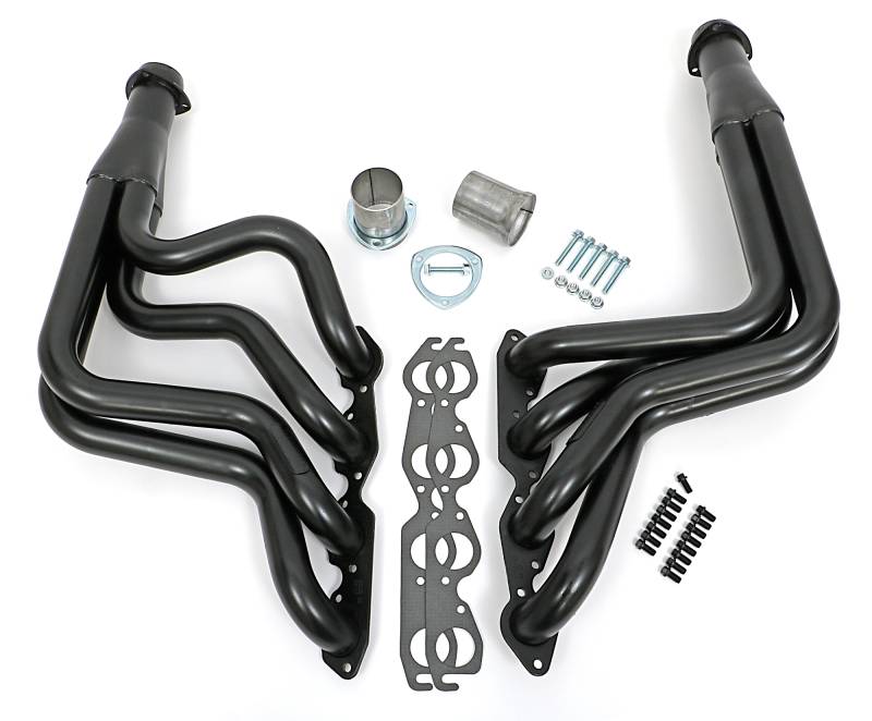 2 in. Long-Tube Headers For 1970-81 Camaro with 396-502 Handcrafted, Mild Steel Construction. Long Tube Header Design Provides Excellent Top-End Horsepower and Torque. Ball & Socket Collector Design requires No Gasket, and Allows For More Exhaust System Misalignment than Old School, Gasket-Style Header Collectors Includes All The Necessary Mounting Hardware, Gaskets and Reducers (exhaust adapters) Limted Lifetime Warranty On Construction, Five Year Warranty on Factory-Applied Header Coating!