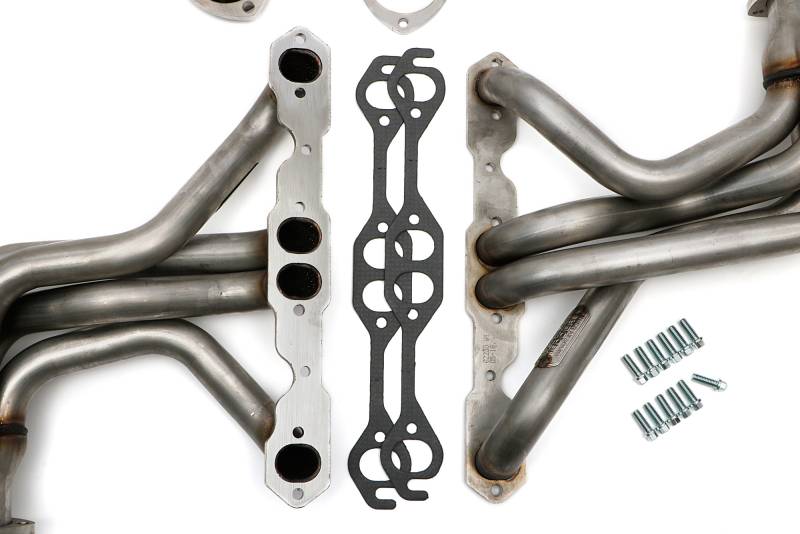 Stainless Long-Tube Headers For 67-91 GM 4WD Trucks with 283-400 100% Premium T304 Stainless Steel Flange and Tube Construction. T304 Stainless Material Is more Durable, Heat Resistant and Corrosion Resistant Than The 409 Stainless Steel Typically Used To Manufacture Exhaust Products. Ball & Socket Collector Design requires No Gasket, and Allows For More Exhaust System Misalignment than Old School, Gasket-Style Header Collectors Includes All The Necessary Mounting Hardware, Gaskets and Reducers (exhaust adapters) Limted Lifetime Warranty On Construction, Five Year Warranty on Factory-Applied Header Coating!