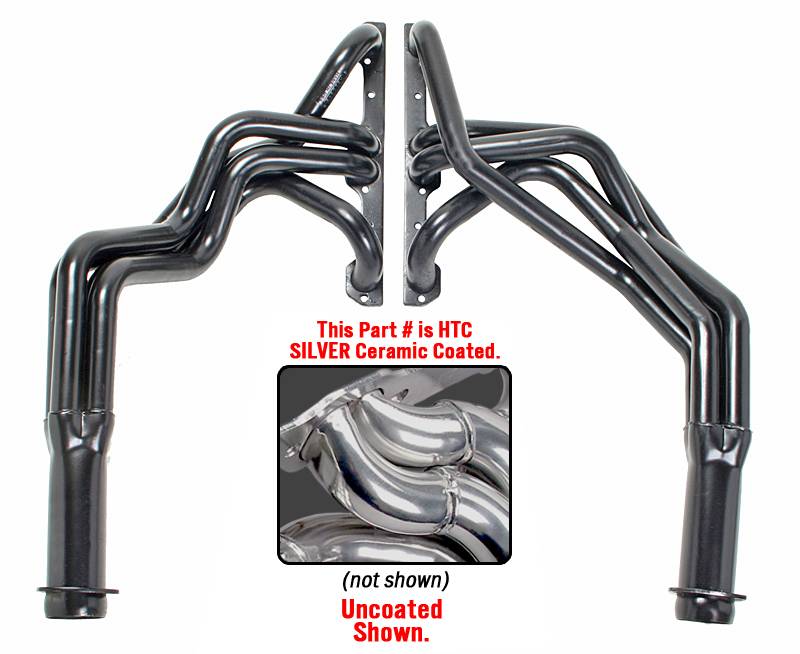 1-5/8 in. Silver Long-Tube Headers For 1955-57 Chevy with 283-400 Handcrafted, Mild Steel Construction. Long Tube Header Design Provides Excellent Top-End Horsepower and Torque. Ball & Socket Collector Design requires No Gasket, and Allows For More Exhaust System Misalignment than Old School, Gasket-Style Header Collectors Includes All The Necessary Mounting Hardware, Gaskets and Reducers (exhaust adapters) Limted Lifetime Warranty On Construction, Five Year Warranty on Factory-Applied Header Coating!