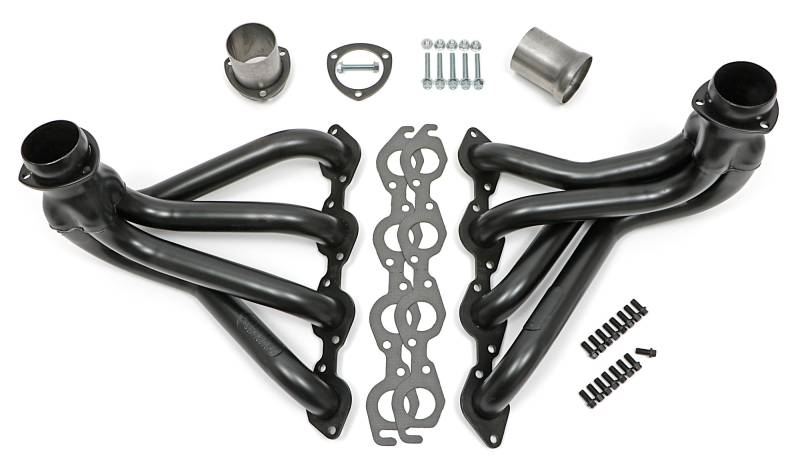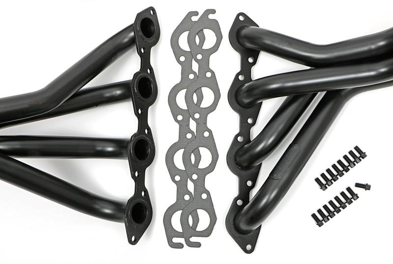 Long-Tube Headers For '63-82 Corvette 396-502 w/Side-Pipes Handcrafted, Mild Steel Construction. Long Tube Header Design Provides Excellent Top-End Horsepower and Torque. Ball & Socket Collector Design requires No Gasket, and Allows For More Exhaust System Misalignment than Old School, Gasket-Style Header Collectors Includes All The Necessary Mounting Hardware, Gaskets and Reducers (exhaust adapters) Limted Lifetime Warranty On Construction, Five Year Warranty on Factory-Applied Header Coating!