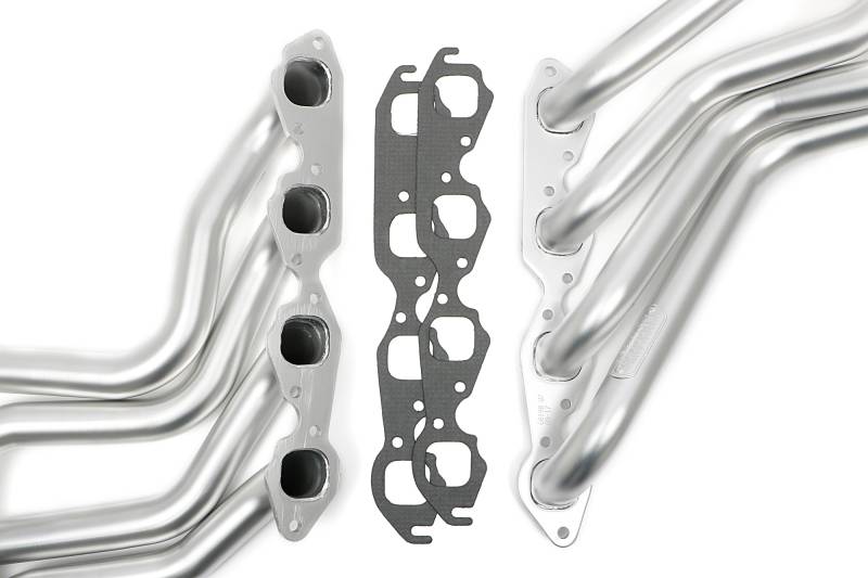 This set is part of Hedman's ELITE line of headers. Hedman ELITE headers have a heavy-duty design that uses stout 3/8" flanges, and thicker 14 gauge primary tubes. The heavier-duty construction of HEDMAN ELITE Hedders makes them ideal for high-performance engines and tow vehicles, both of which produce higher exhaust temperatures. ELITE models have a MATTE-SILVER ceramic finish that looks great and keeps more heat in the tubes, and underhood temperatures down.