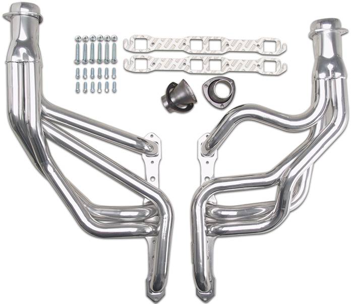 Handcrafted, Mild Steel Construction. Long Tube Header Design Provides Excellent Top-End Horsepower and Torque. Ball & Socket Collector Design requires No Gasket, and Allows For More Exhaust System Misalignment than Old School, Gasket-Style Header Collectors Includes All The Necessary Mounting Hardware, Gaskets and Reducers (exhaust adapters) Limted Lifetime Warranty On Construction, Five Year Warranty on Factory-Applied Header Coating!Details