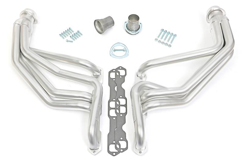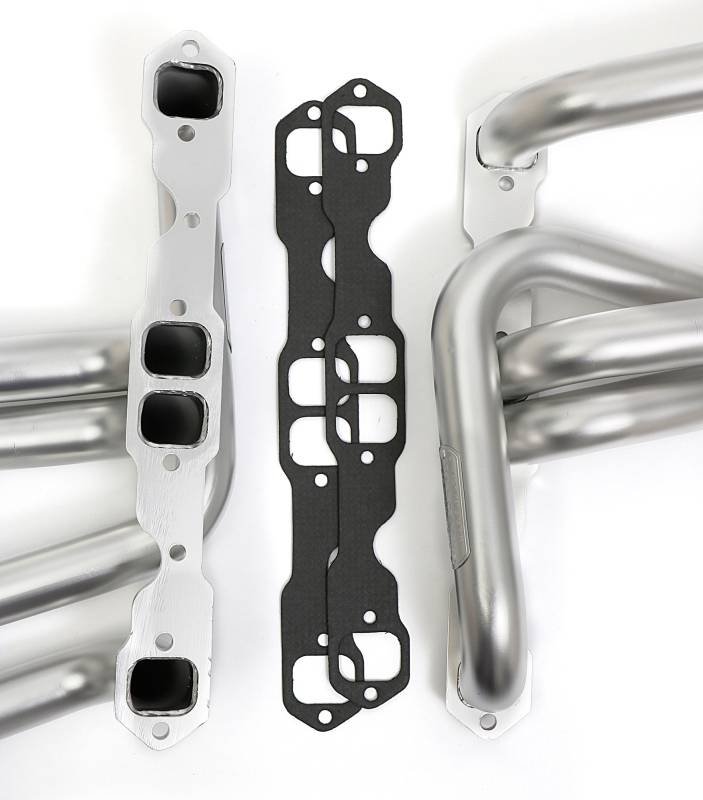 Heavy-Duty ELITE Header Construction With Thick 3/8 in. Flanges and 14g Primary Tubes To Hold Up To The Added Tortures Of High-Performance and Truck Engines. Thermal Coating Keeps More Heat In The Headers To Keep Underhood Temps Down and Protect Against Corrosion. Ball & Socket Collector Design requires No Gasket, and Allows For More Exhaust System Misalignment than Old School, Gasket-Style Header Collectors Includes All The Necessary Mounting Hardware, Gaskets and Reducers (exhaust adapters) Limted Lifetime Warranty On Construction, Five Year Warranty on Factory-Applied Header Coating!Details