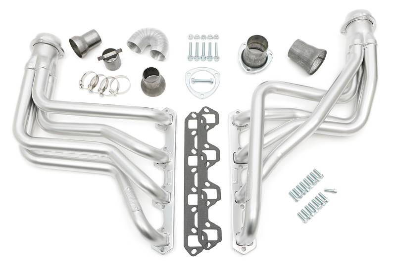 Heavy-Duty ELITE Header Construction With Thick 3/8 in. Flanges and 14g Primary Tubes To Hold Up To The Added Tortures Of High-Performance and Truck Engines. Thermal Coating Keeps More Heat In The Headers To Keep Underhood Temps Down and Protect Against Corrosion. Ball & Socket Collector Design requires No Gasket, and Allows For More Exhaust System Misalignment than Old School, Gasket-Style Header Collectors Includes All The Necessary Mounting Hardware, Gaskets and Reducers (exhaust adapters) Limted Lifetime Warranty On Construction, Five Year Warranty on Factory-Applied Header Coating!Details