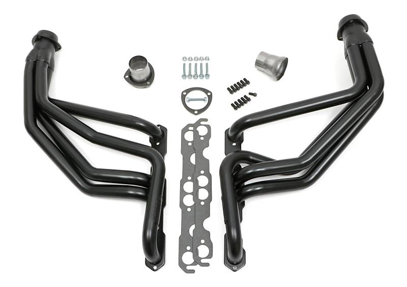 Handcrafted, Mild Steel Construction. Long Tube Header Design Provides Excellent Top-End Horsepower and Torque. Ball & Socket Collector Design requires No Gasket, and Allows For More Exhaust System Misalignment than Old School, Gasket-Style Header Collectors Includes All The Necessary Mounting Hardware, Gaskets and Reducers (exhaust adapters) Limted Lifetime Warranty On Construction, Five Year Warranty on Factory-Applied Header Coating!Details