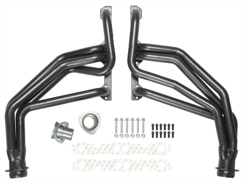 Handcrafted, Mild Steel Construction. Long Tube Header Design Provides Excellent Top-End Horsepower and Torque. Ball & Socket Collector Design requires No Gasket, and Allows For More Exhaust System Misalignment than Old School, Gasket-Style Header Collectors Includes All The Necessary Mounting Hardware, Gaskets and Reducers (exhaust adapters) Limted Lifetime Warranty On Construction, Five Year Warranty on Factory-Applied Header Coating!Details