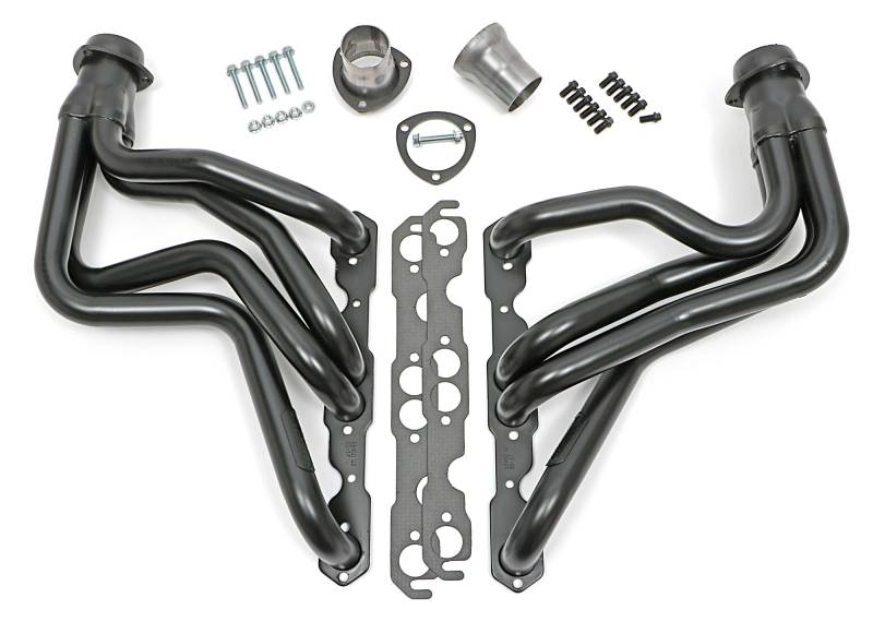 Handcrafted, Mild Steel Construction. Long Tube Header Design Provides Excellent Top-End Horsepower and Torque. Ball & Socket Collector Design requires No Gasket, and Allows For More Exhaust System Misalignment than Old School, Gasket-Style Header Collectors Includes All The Necessary Mounting Hardware, Gaskets and Reducers (exhaust adapters) Limted Lifetime Warranty On Construction, Five Year Warranty on Factory-Applied Header Coating!Details