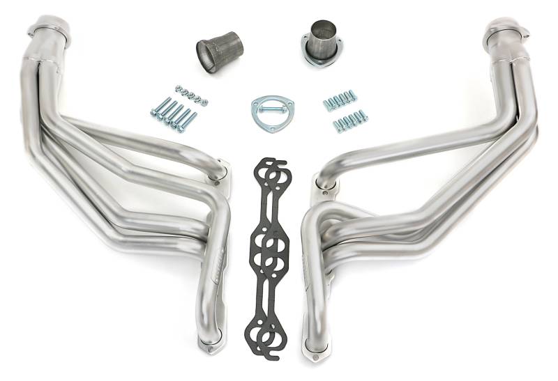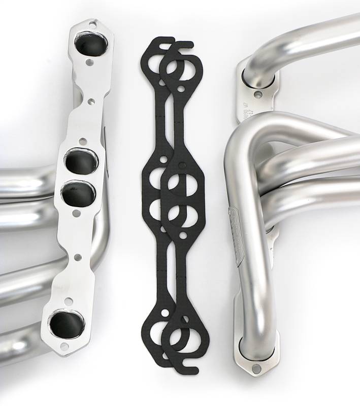 Heavy-Duty ELITE Header Construction With Thick 3/8 in. Flanges and 14g Primary Tubes To Hold Up To The Added Tortures Of High-Performance and Truck Engines. Thermal Coating Keeps More Heat In The Headers To Keep Underhood Temps Down and Protect Against Corrosion. Ball & Socket Collector Design requires No Gasket, and Allows For More Exhaust System Misalignment than Old School, Gasket-Style Header Collectors Includes All The Necessary Mounting Hardware, Gaskets and Reducers (exhaust adapters) Limted Lifetime Warranty On Construction, Five Year Warranty on Factory-Applied Header Coating!Details