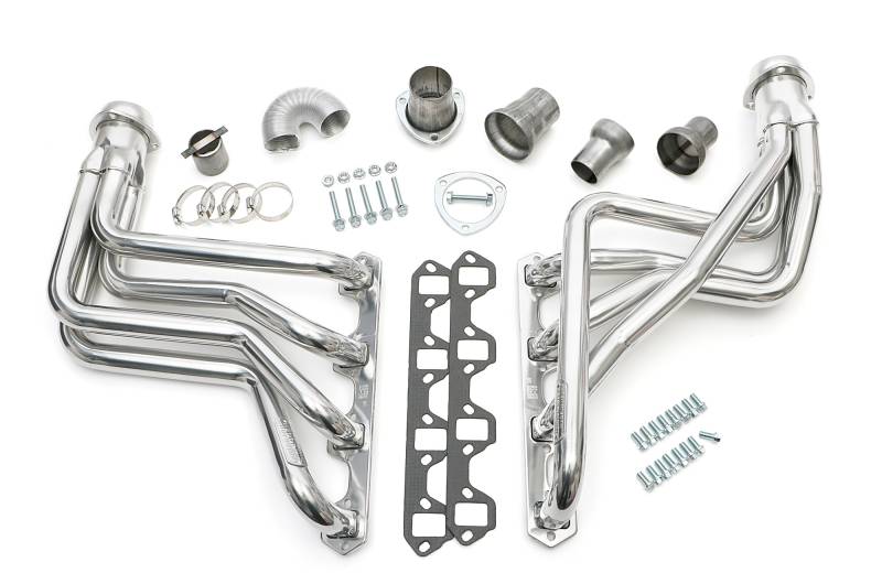 Handcrafted, Mild Steel Construction. Long Tube Header Design Provides Excellent Top-End Horsepower and Torque. Ball & Socket Collector Design requires No Gasket, and Allows For More Exhaust System Misalignment than Old School, Gasket-Style Header Collectors Includes All The Necessary Mounting Hardware, Gaskets and Reducers (exhaust adapters) Limted Lifetime Warranty On Construction, Five Year Warranty on Factory-Applied Header Coating!Details