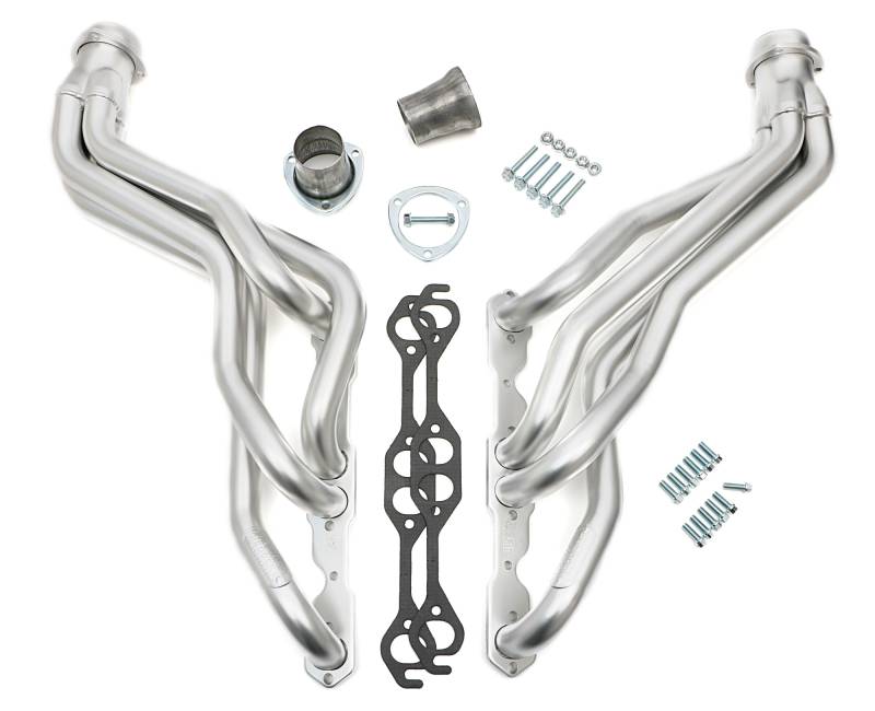 Heavy-Duty ELITE Header Construction With Thick 3/8 in. Flanges and 14g Primary Tubes To Hold Up To The Added Tortures Of High-Performance and Truck Engines. Thermal Coating Keeps More Heat In The Headers To Keep Underhood Temps Down and Protect Against Corrosion. Ball & Socket Collector Design requires No Gasket, and Allows For More Exhaust System Misalignment than Old School, Gasket-Style Header Collectors Includes All The Necessary Mounting Hardware, Gaskets and Reducers (exhaust adapters) Limted Lifetime Warranty On Construction, Five Year Warranty on Factory-Applied Header Coating!Details